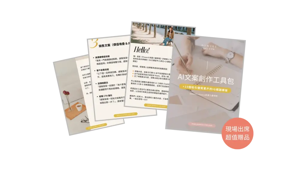 這也是為什麼,我希望幫助正在努力經營個人品牌,想透過專業與知識成長事業的你,不再對事業成長迷茫,而是能用精準策略 + 高價變現模式,讓你的事業穩定成長,打造屬於你的高價品牌變現力!